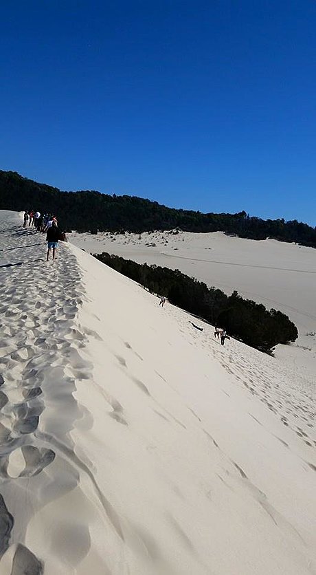 The tour is a full day, and you won't want to miss a thing. Departing at at 7am from Brisbane, you will watch the sun rise over Brisbane's city skyline as you depart toward your adventure. When you arrive on the white sandy beaches of Moreton Bay Island, the adventure begins. Board your four wheel drive guided tour, where you will travel south through the thick forest on sand tracks that head toward the desert sand hills of Moreton Bay. When you arrive, you will be provided with all the gear you need for the thrill of a lifetime - sand surfing down some of Moreton Bay's largest sand hills.