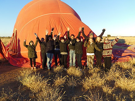 Your ballooning adventure begins in the cool pre dawn darkness as you are picked up from your accommodation in Alice Springs. During the drive to our desert launch site you will get to know the crew as they make final weather checks and explain the routine for the morning. At the launch site gas burners are used to inflate the balloons just as the sun lights up the rugged MacDonnell Ranges.