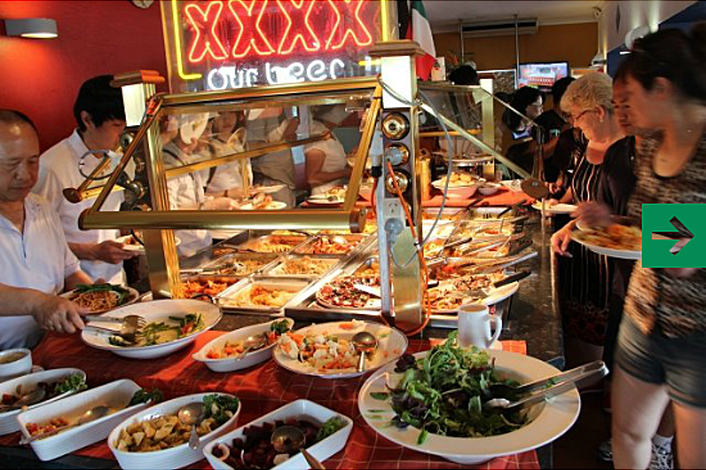 • Delicious all you can eat hot buffet lunch at Roscoe’s Piazza