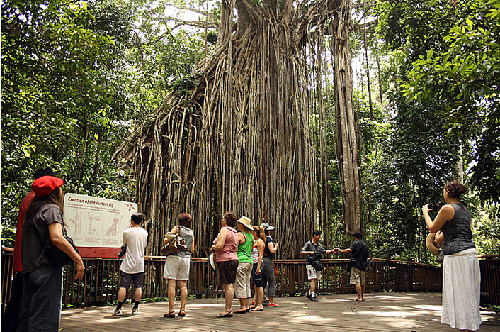 Next stop is The Curtain Fig Tree, an amazing feat of nature reaching 45+ metres up into the tropical rainforest canopy. This is a boardwalk with plenty of time for photographs of the 600-800-year-old epiphyte.